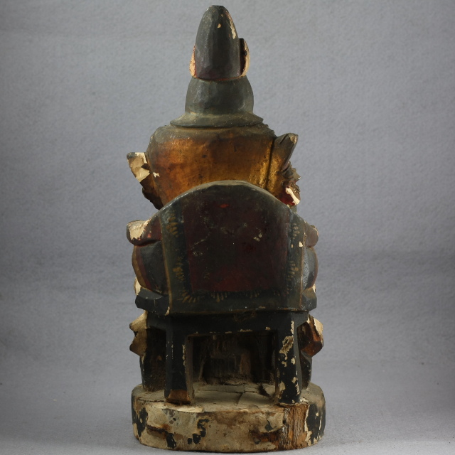 至于这些木雕造像的保存,主要应注意不要用水冲洗,不要用硬刷子磨刷表面,否则,油彩剥落,包浆尽失,实为遗憾。也不应将造像至于阳光强烈或潮湿处,以防木材开裂或腐烂。最好用软毛掸除造像表面尘灰后,用拧干的吸水棉布予以轻擦(注意防止布纤维钩起造像表面材质),旁置樟脑,也可配以玻璃罩。有条件的也可将造像置于佛龛,需要的时候用瞳灯映照,则更具别样的文化情怀。
